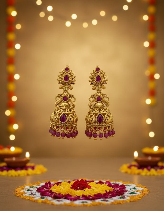 • Traditional temple jewellery aesthetic