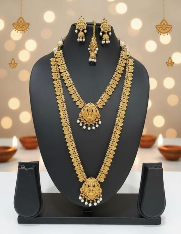• Traditional temple jewellery aesthetic
