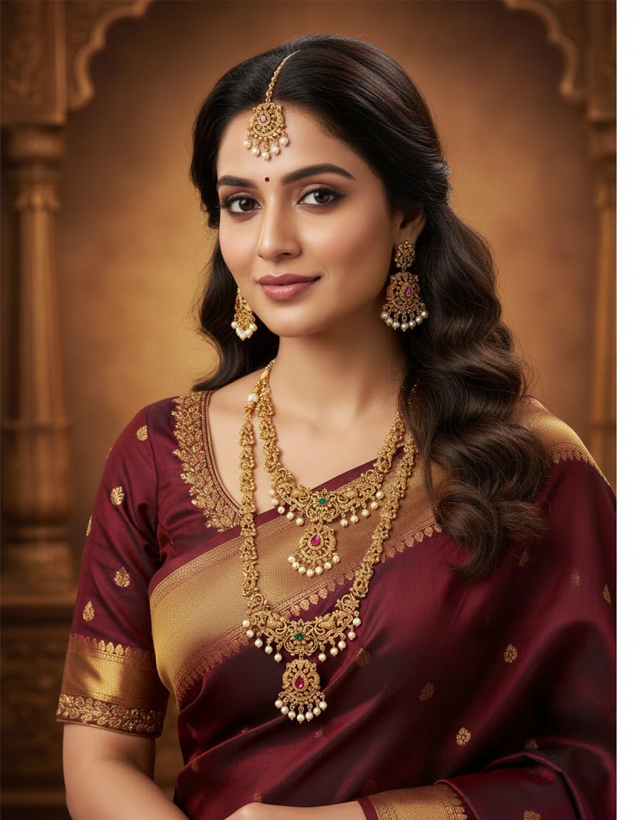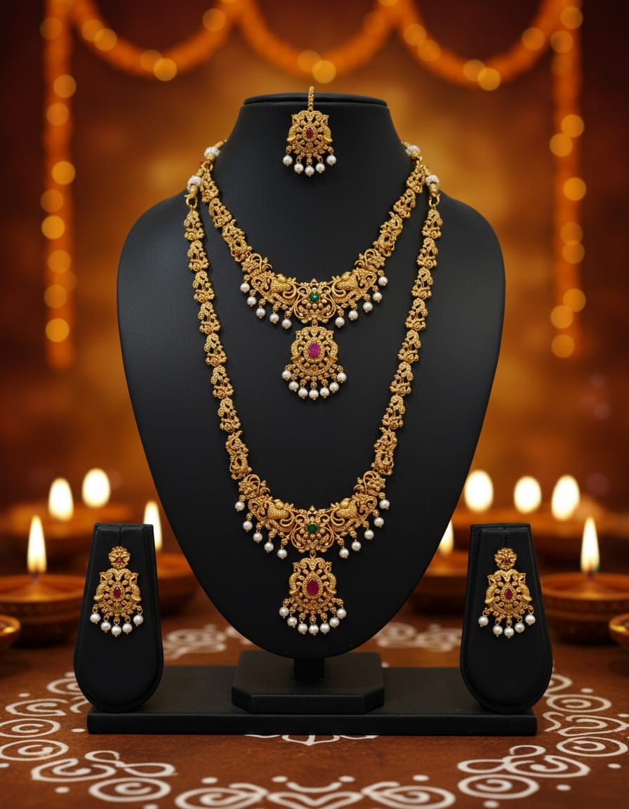 • Traditional temple jewellery aesthetic