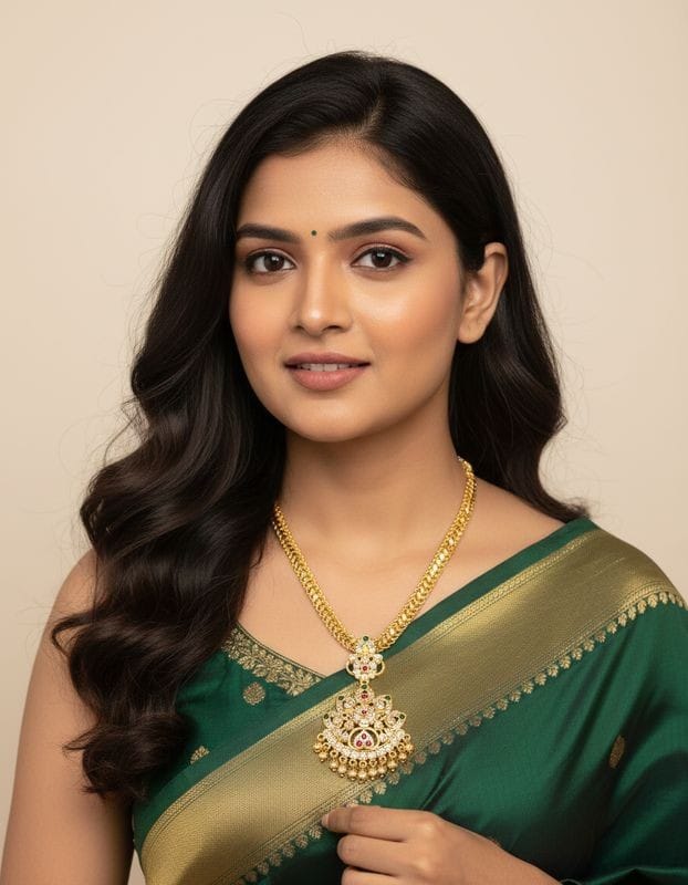 • Traditional temple jewellery aesthetic
